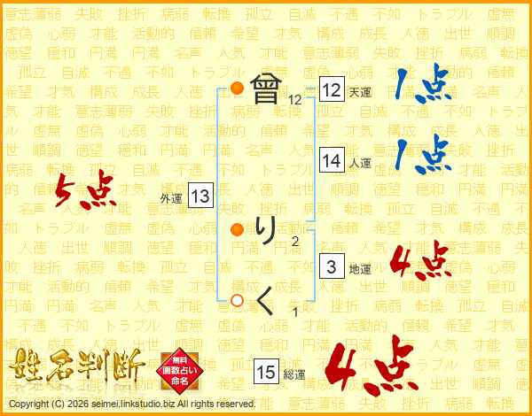 曾りくさんの総運は15画の4点!