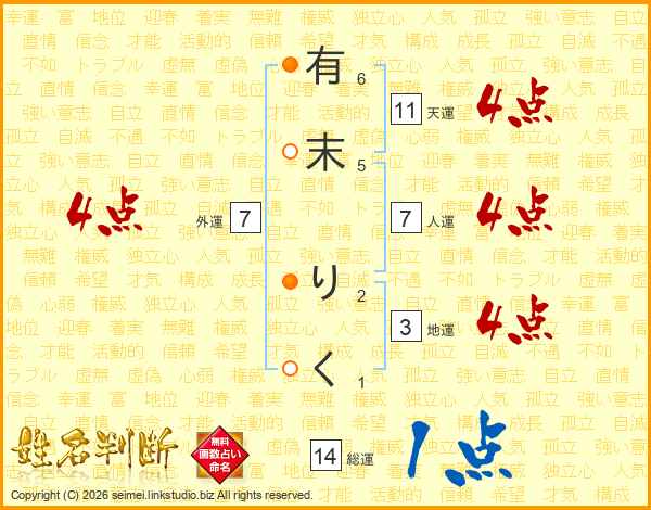 有末りくさんの人運は7画の4点!