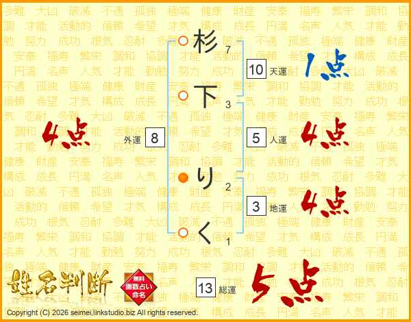 杉下りくさんの総運は13画の5点!