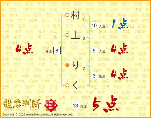 村上りくさんの総運は13画の5点!