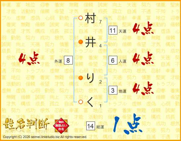 村井りくさんの天運は11画の4点!