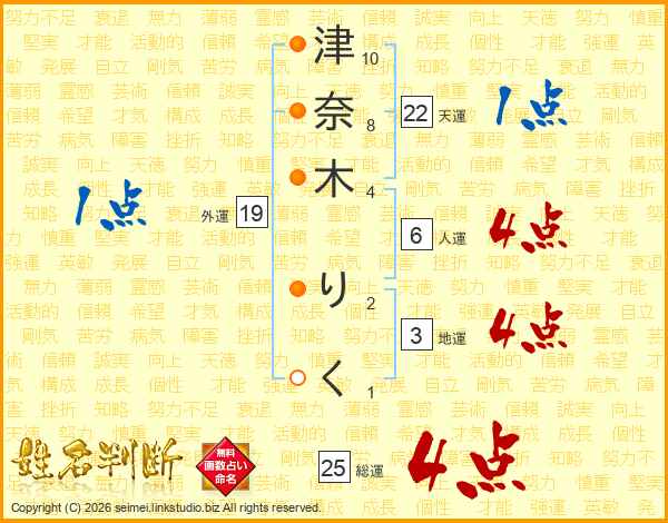 津奈木りくさんの総運は25画の4点!