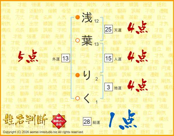 浅葉りくさんの天運は25画の4点!