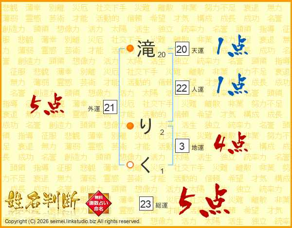 滝りくさんの総運は23画の5点!