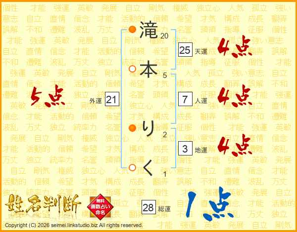 滝本りくさんの天運は25画の4点!