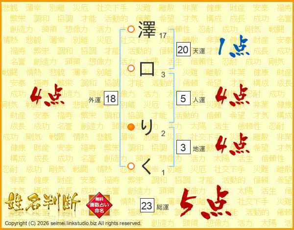 澤口りくさんの総運は23画の5点!