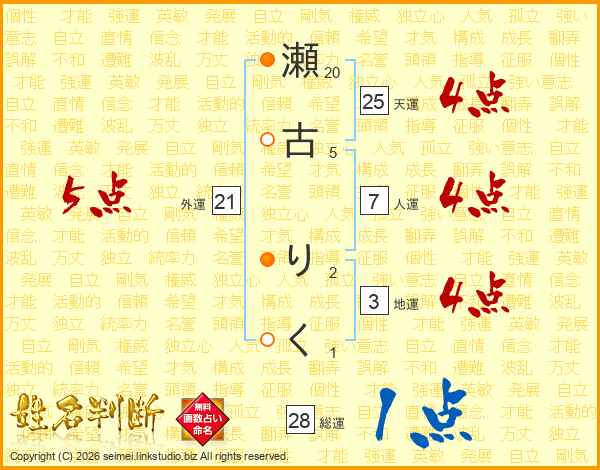瀬古りくさんの天運は25画の4点!
