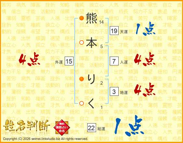熊本りくさんの人運は7画の4点!