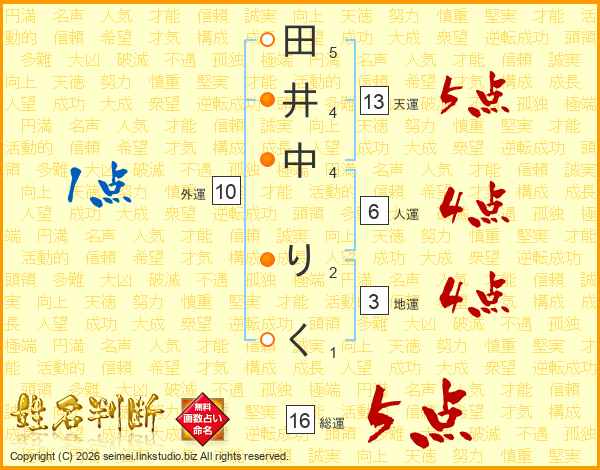 田井中りくさんの天運は13画の5点!