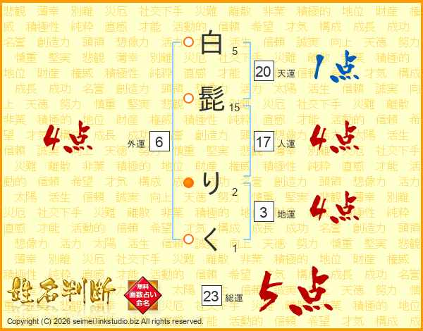 白髭りくさんの総運は23画の5点!