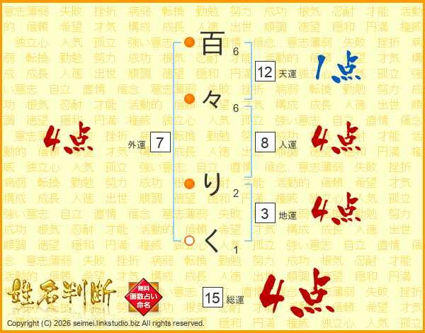 百々りくさんの総運は15画の4点!