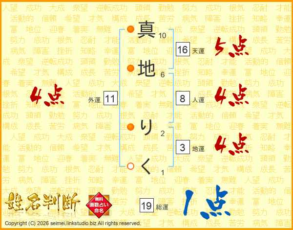 真地りくさんの天運は16画の5点!