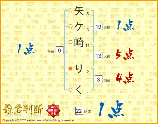 矢ケ崎りくさんの人運は13画の5点!