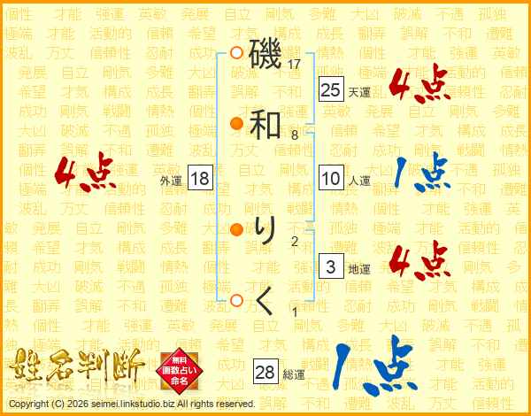 磯和りくさんの天運は25画の4点!