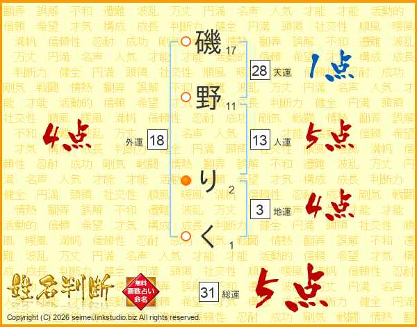 磯野りくさんの外運は18画の4点!