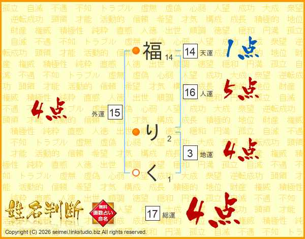 福りくさんの総運は17画の4点!
