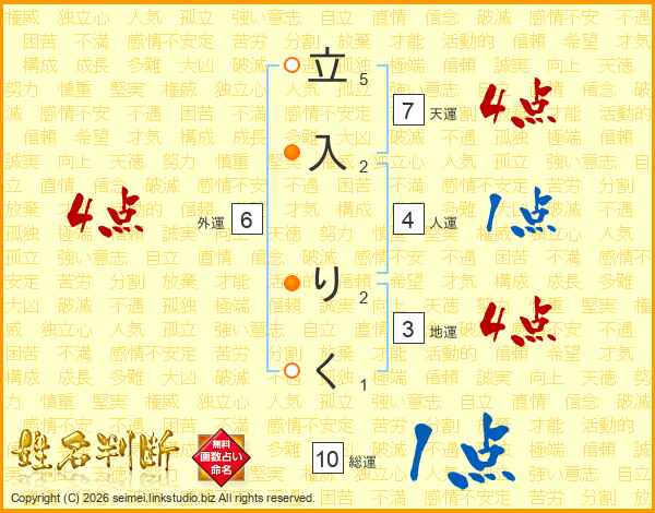 立入りくさんの天運は7画の4点!
