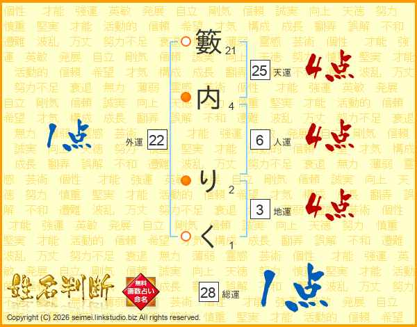 籔内りくさんの天運は25画の4点!