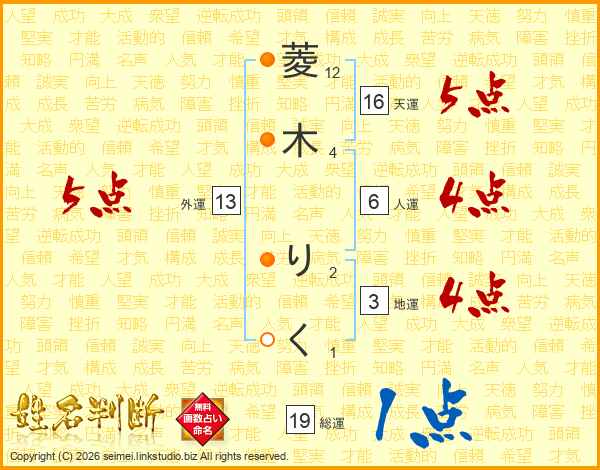 菱木りくさんの総運は19画の1点!