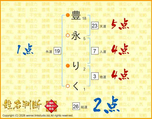 豊永りくさんの天運は23画の5点!