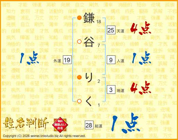 鎌谷りくさんの天運は25画の4点!