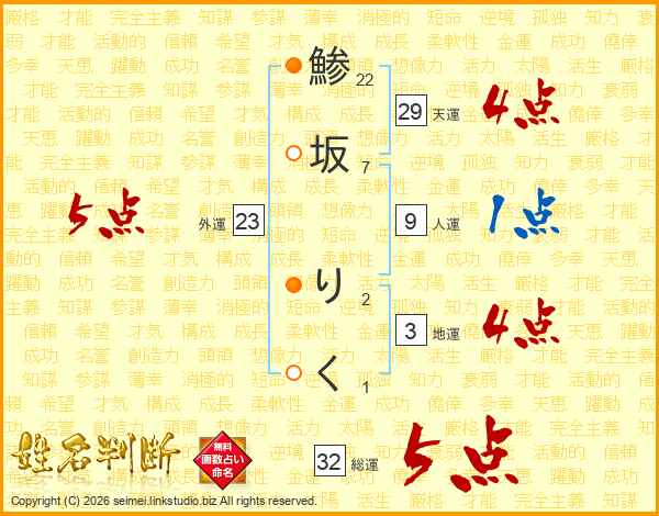 鯵坂りくさんの総運は32画の5点!