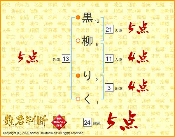 黒柳りくさんの総運は24画の5点!