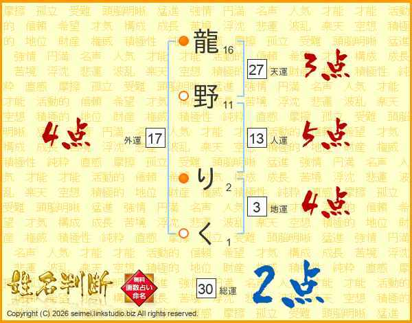 龍野りくさんの総運は30画の2点!