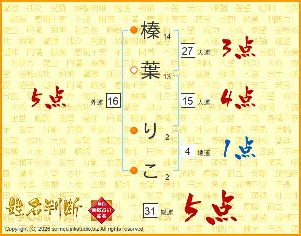 榛葉りこさんの総運は31画の5点!