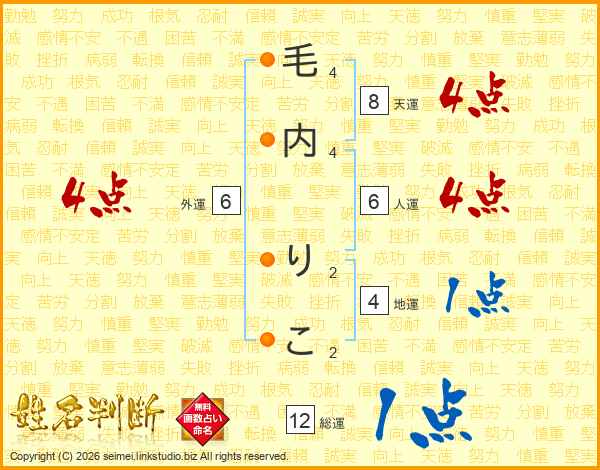 毛内りこさんの総運は12画の1点!