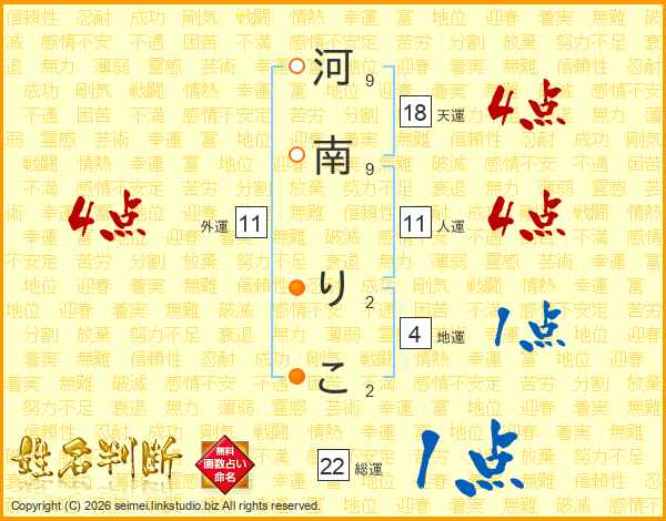 河南りこさんの人運は11画の4点!