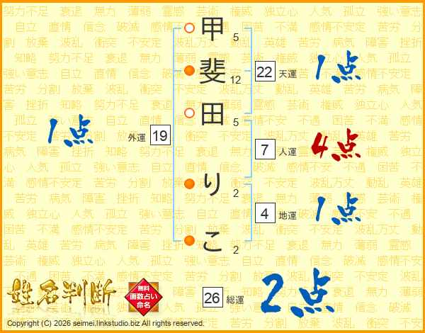 甲(5画)斐(12画)田(5画) り(2画)こ(2画)
