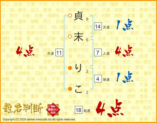 貞末りこさんの総運は18画の4点!
