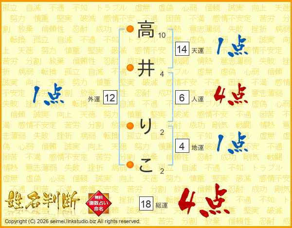 高井りこさんの総運は18画の4点!