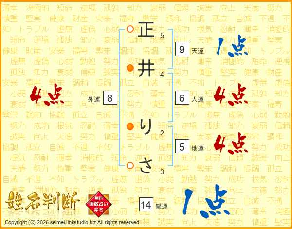 正井りささんの総運は14画の1点!