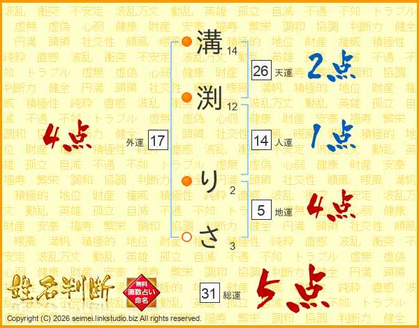 溝渕りささんの天運は26画の2点!