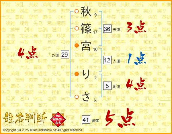 秋(9画)篠(17画)宮(10画) り(2画)さ(3画)