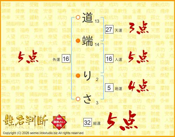 道端りささんの総運は32画の5点!