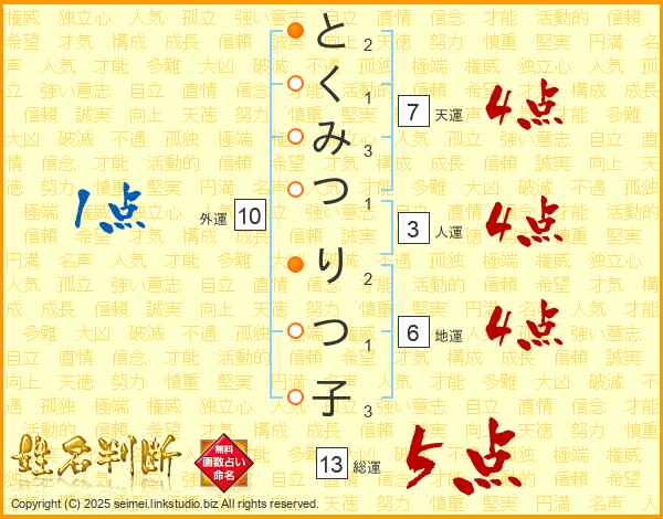 と(2画)く(1画)み(3画)つ(1画) り(2画)つ(1画)子(3画)