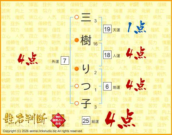 三樹りつ子さんの総運は25画の4点!