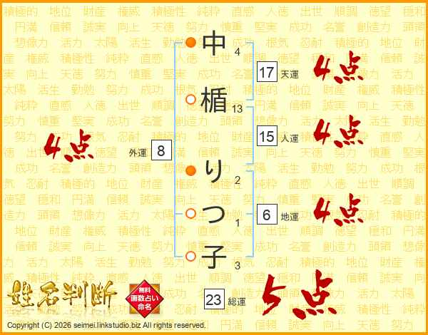 中楯りつ子さんの総運は23画の5点!