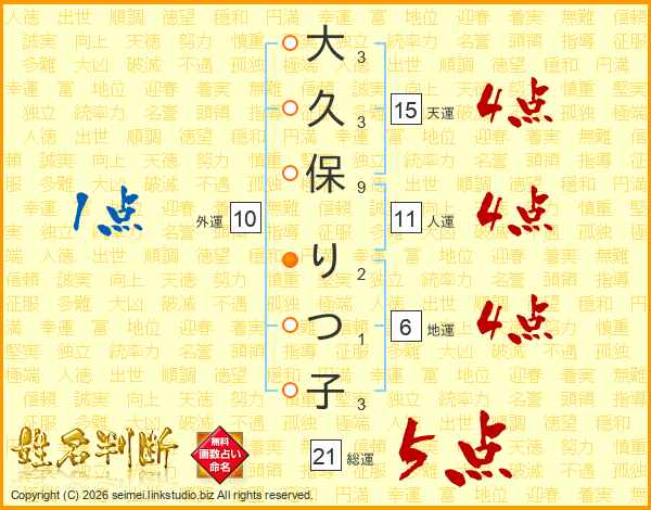 大久保りつ子さんの総運は21画の5点!