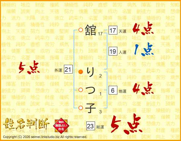 舘りつ子さんの総運は23画の5点!