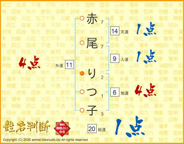 赤尾りつ子さんの天運は14画の1点!