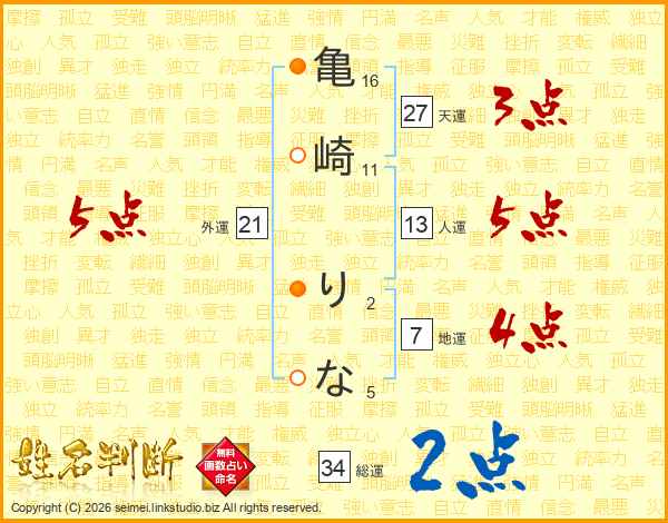 亀崎りなさんの外運は21画の5点!