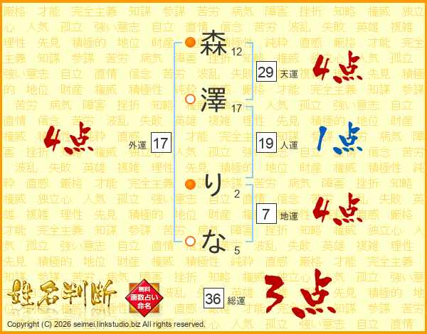 森澤りなさんの総運は36画の3点!