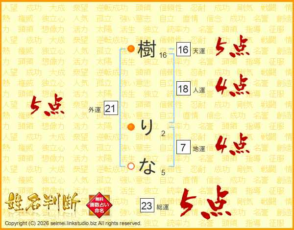 樹りなさんの総運は23画の5点!