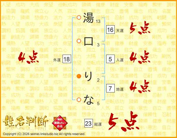 湯口りなさんの総運は23画の5点!