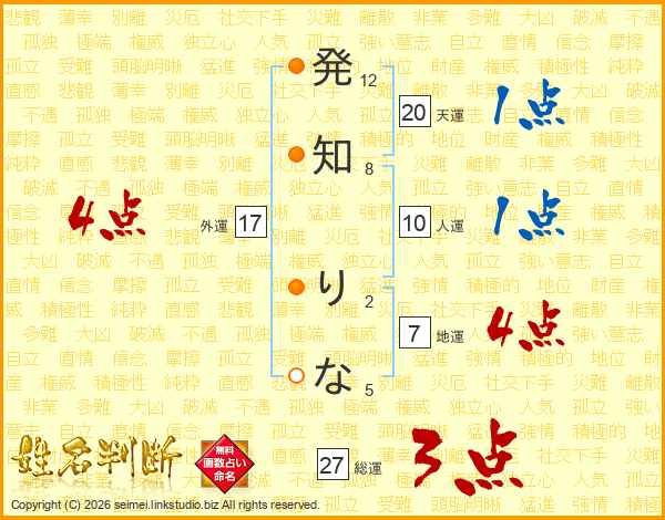 発知りなさんの総運は27画の3点!