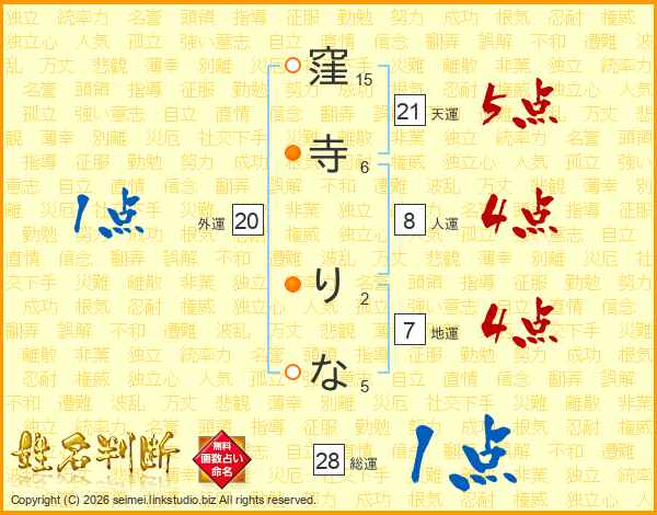 窪寺りなさんの天運は21画の5点!